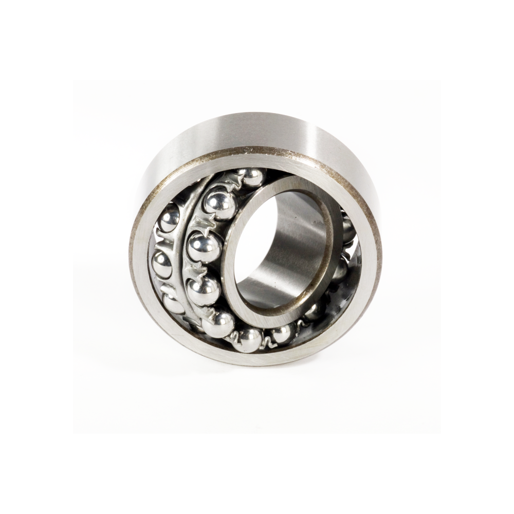 The inner ring of this type of bearing has two raceways and the outer ring has a single spherical raceway with its center of curvature coincident with the bearing axis. Therefore, the axis of the inner ring, balls, and cage can deflect to some extent around the bearing center. Consequently, minor angular misalignment of the shaft and housing caused by the machining or mounting errors are automatically corrected. Generally, self-aligning ball bearings feature a tapered bore for mounting using adapter sleeves. These are particularly suitable for applications where considerable shaft deflection or misalignment is to be expected. Self-aligning ball bearings have the lowest friction of all rolling bearings, enabling them to run cooler even at high speeds.